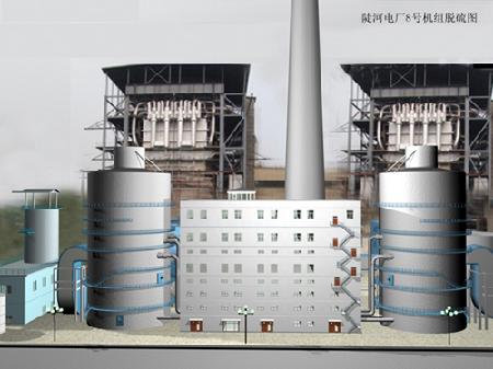 中國(guó)恩菲設(shè)計(jì)的第一個(gè)電廠煙氣脫硫工程。采用“石灰-石膏”濕法煙氣脫硫工藝,設(shè)計(jì)處理氣量為2×83萬(wàn)Nm3/h, 煙氣中SO2含量約為2800mg/Nm3,一爐一塔配置,吸收塔為中國(guó)自主知識(shí)產(chǎn)權(quán)的“高效旋流板塔”。2004年9月開始建設(shè),2005年12月順利投產(chǎn),脫硫率高于95%,是中國(guó)恩菲第一套完全采用國(guó)產(chǎn)化煙氣脫硫技術(shù)的工程。