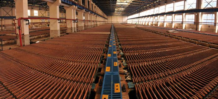 Ø 大冶有色金屬集團(tuán)公司30萬t/a電銅,采用大板永久陰極工藝,引進(jìn)機(jī)組,投產(chǎn)時間2012年。